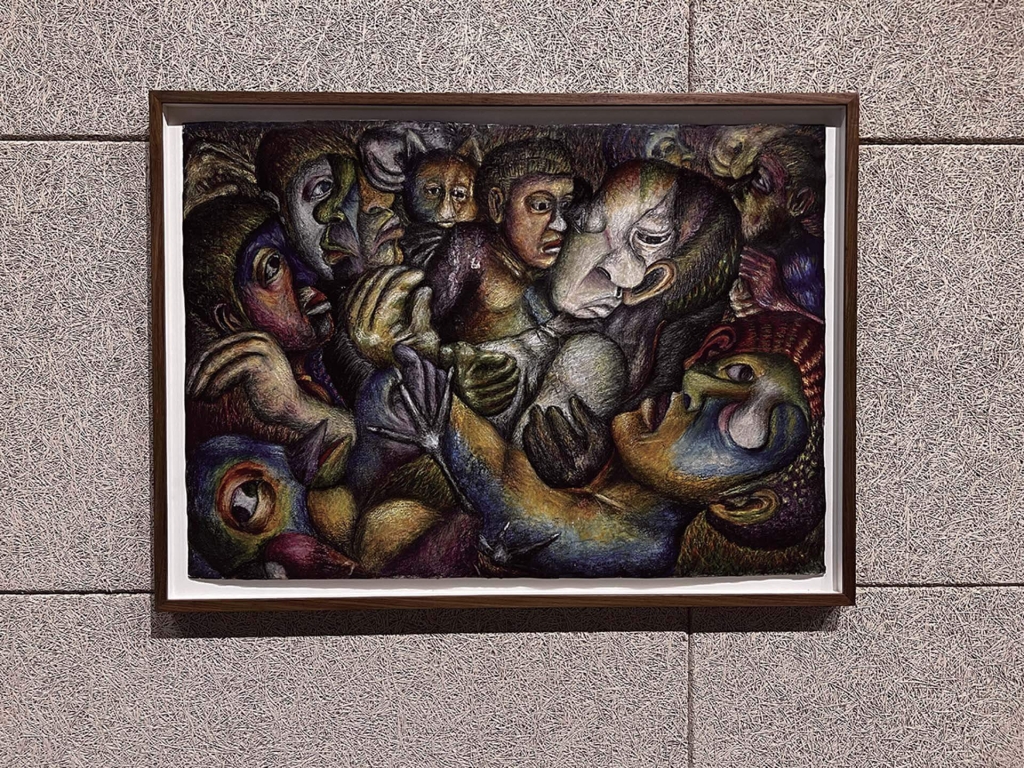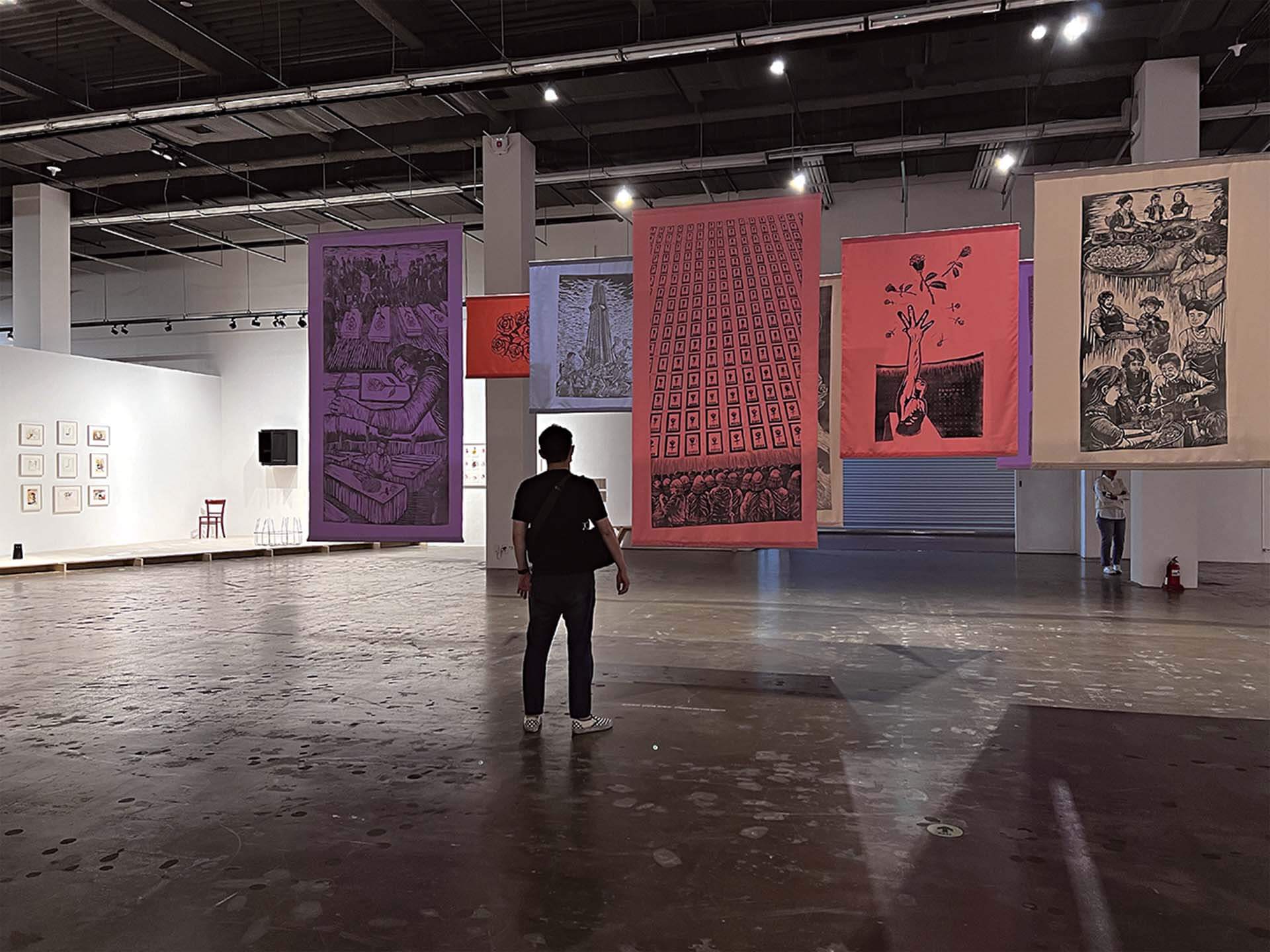 以「似水柔弱」作為主題,可以想見的是其十分的具有「陰性」特質。而展覽中第一件作品,恰恰完美的展現了其思索藝術的姿態,南非女性藝術家Buhlebezwe Siwani的錄像作品,鮮明的投射出,非西方啟蒙文化以及白種理性男人對於自然環境的擁抱與親近方法,揉雜了原住民的自然崇拜傳統與大地女神的自然觀,Buhlebezwe Siwani的作品在一開始便點出了雙年展的展覽策略。與此同時另一位南非女性藝術家Mmakgabo Helen Sebidi則以傳統傳說的繪畫,勾勒出種族隔離時代的政治與生命記憶,而羅曼人(吉普賽人)藝術家Małgorzata Mirga-Tas的拼布繪畫更細膩的顯影了,位於西方核心(歐洲)裡的邊陲狀態以及其文化技藝的傳承。「女性」那柔韌的陰性抗爭特質以及其承載記憶的面貌,在展覽中持續地展現出沉靜卻又深刻的感染性。