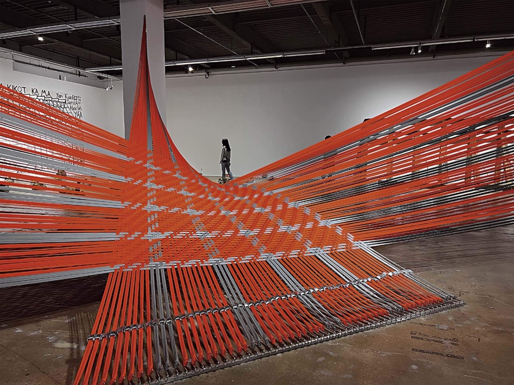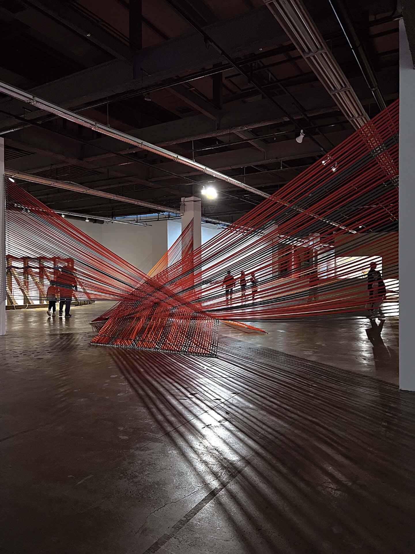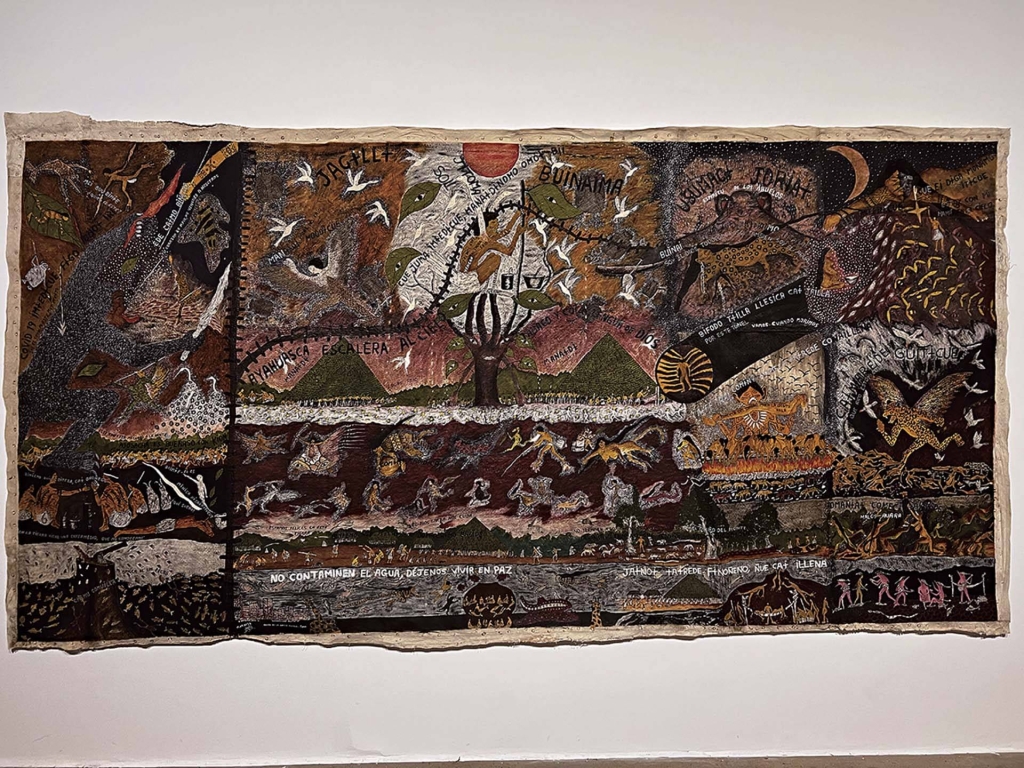 展覽中秘魯Huitoto文化的藝術家Santiago Yahuarcani通過畫筆以及傳統神話的構圖,描繪出了西方白種資本主義如何地掠奪與侵佔了原住民的生存場域。而哥倫比亞Nonuya族的藝術家Abel Rodríguezeople則在戰亂流亡中努力地以繪畫保存傳統部落中藥人(medicine man)的植物與動物知識。紐西蘭的毛利女性藝術家團體Mataaho,則以航運、貨運的集束帶重新以毛利的編織圖騰編構成空間場域,藉以投射出毛利族的航海文化以及對於航海的祈禱。而北海道愛奴原住民藝術家Mayunkiki,則以仿報導文學與攝影的方式,重構了在現代性維新過程中被禁制的愛奴文化與鯨面的傳統。