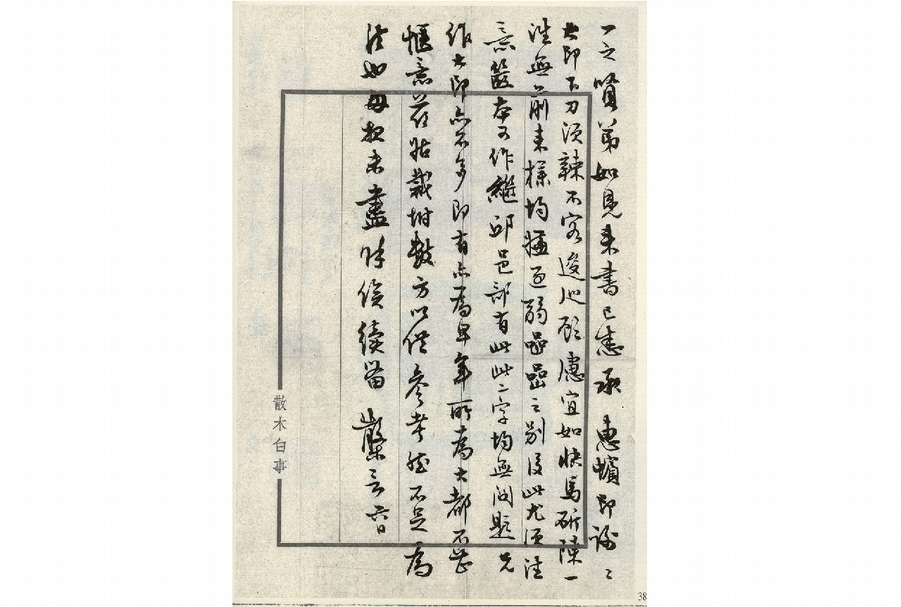 大概一星期後,鄧散木就將批改好的印稿交給施叔範,施叔範就從上海寄到武漢了。印稿上批改許多,每方印作一引號,這印布局不行,那方印篆法有問題,哪裡好哪裡不好,哪一路印不能學,很仔細的寫出來,又附上一些自己的印拓。施叔範也將吳平的地址給他,讓吳平直接和鄧散木通信,這一來一往函授起來了,幾個月吳平就寄上幾十方印,這時的吳平都稱他為前輩先生,沒稱老師。