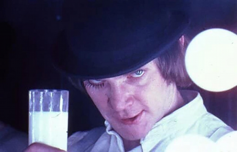 《發條橘子》中在科洛瓦奶吧的Alex,由麥坎.邁道爾(Malcolm McDowell)飾演。( © Warner Bros.Entertainment Inc.)