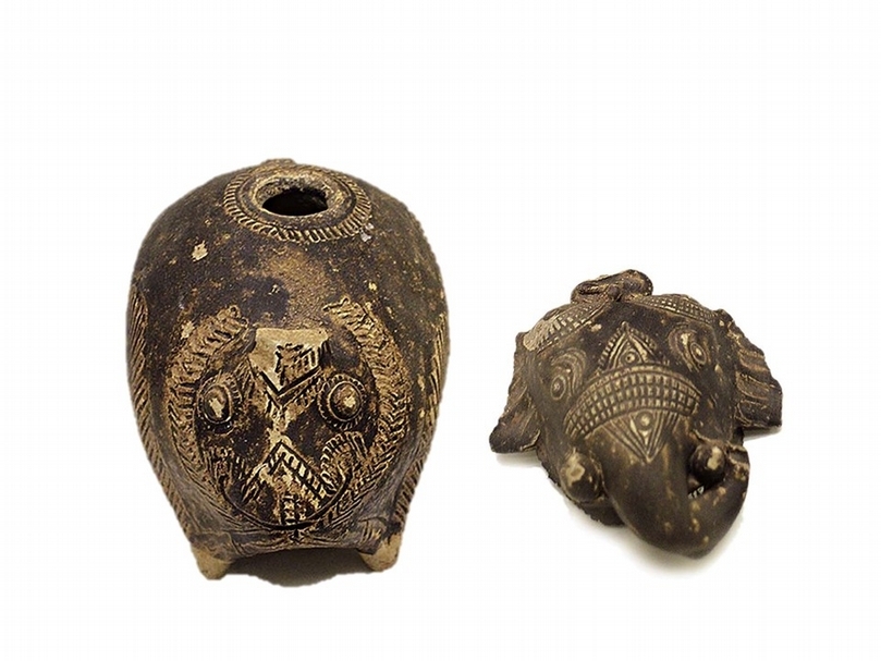 註4:另外也還有大象等器形,橢圓形的剖面、身軀較大四足短小,器形上並沒有太大差異。頂部有個略大的孔,應是作為裝載內容物進出的孔洞,被認為是填裝咀嚼檳榔時所需之石灰的容器但無證據證實。