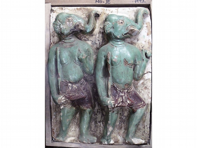留存下來的這類蒲甘陶瓷製品,很可能是由孟人陶工所做。蒲甘王國在13世紀崩解後,孟人於中部建立的勃固王國(Bago/Pegu)在15世紀左右生產有大量分區施掛不同釉藥的大型本生譚嵌板,並裝飾於他們的佛塔、寺廟中。