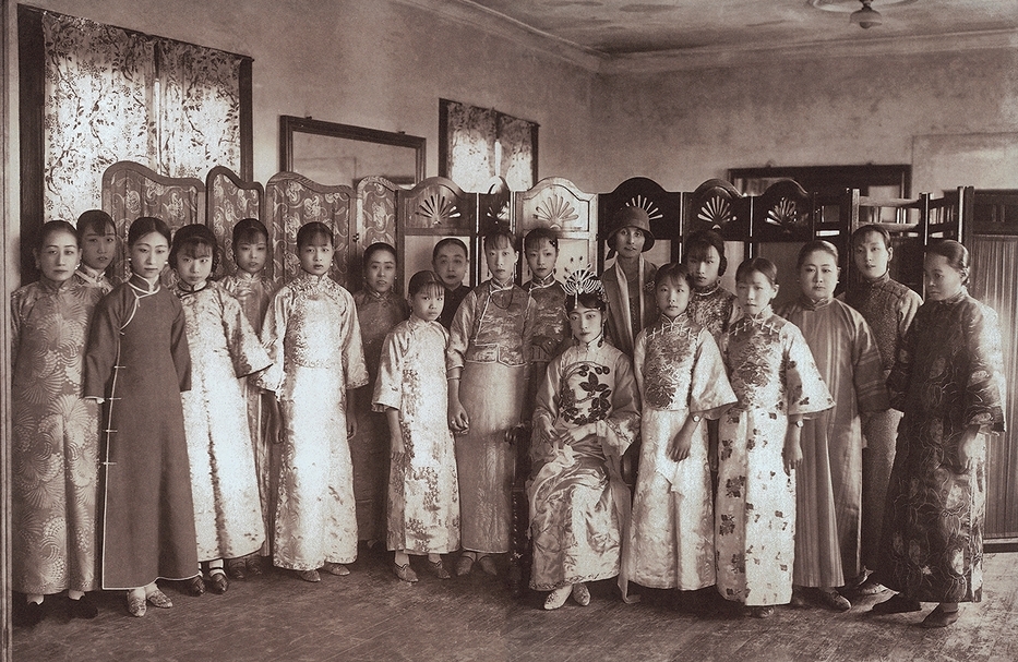 婉容(照片中坐者)與來訪女賓攝於1920年代,轉引自《最後的皇朝—故宮珍藏世紀舊影》。