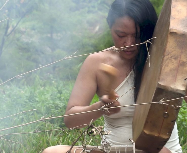 中國藝術家炭嘆運用了薩滿的意識轉換儀式,安排薩滿鼓手在《採氣》作品中出場。(炭嘆提供)