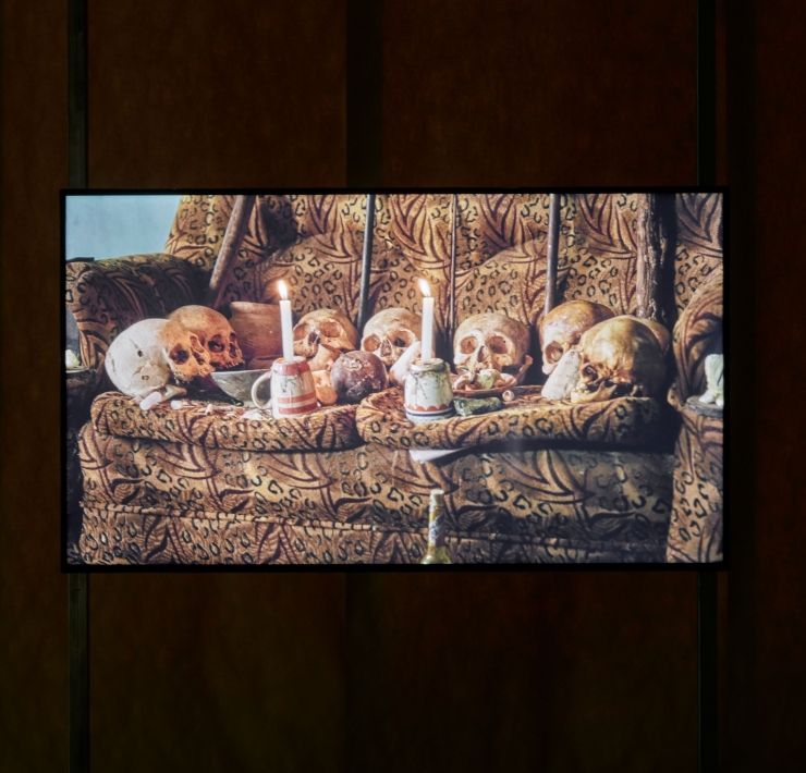梁廷毓《斷頭之河》探討客家漢人神明及原住民祖靈彼此拉扯的歷史進程。(台北當代藝術館提供)