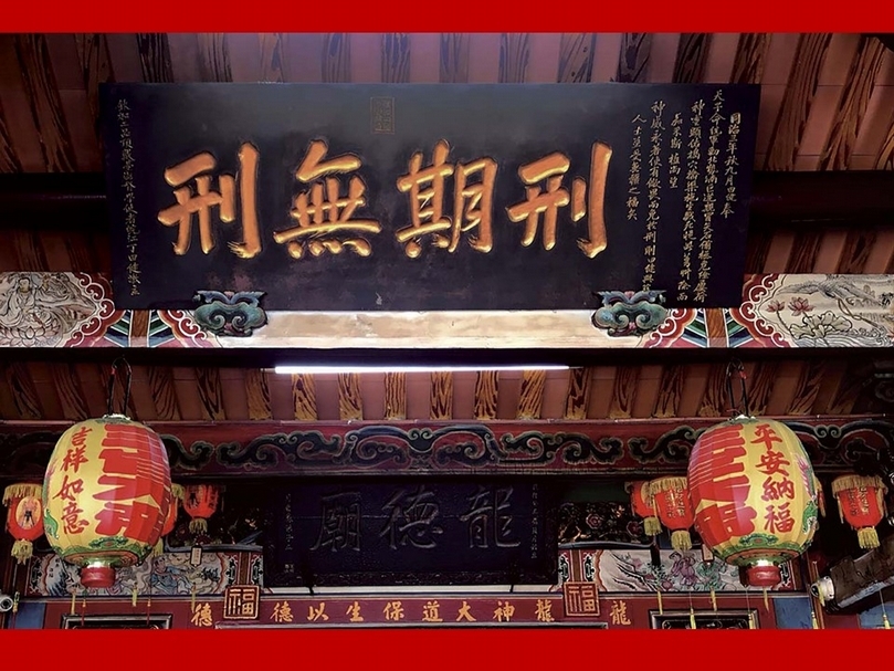 南投縣草屯鎮龍德廟「刑期無刑」匾。(攝影/王怡文)