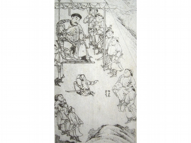 努爾哈赤起兵之初,侍衛由家丁、奴僕構成,所著服飾較為簡單。圖為清〈太祖實錄戰圖〉之「太祖恩養布占泰」局部。(李理、李姝夢提供)