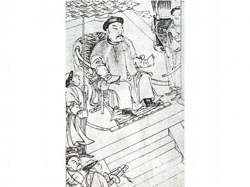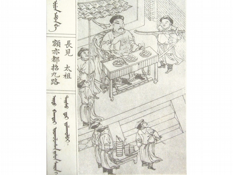 清初侍衛服飾雖然簡單,但已是當時最好的服飾之一。圖為清〈太祖實錄戰圖〉之「額亦都招九路長見太祖」。(李理、李姝夢提供)
