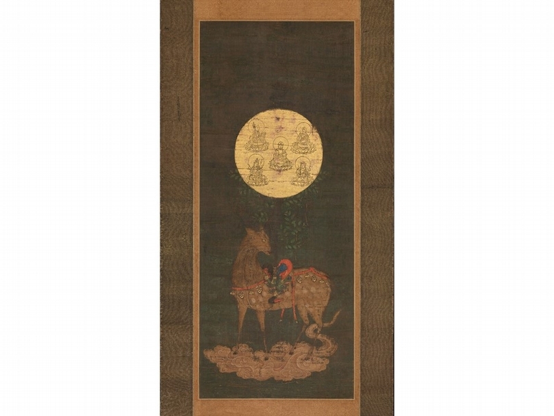 日本佛教圖像中常有動物,圖為14世紀《春日鹿曼荼羅》。(©The Metropolitan Museum of Art)