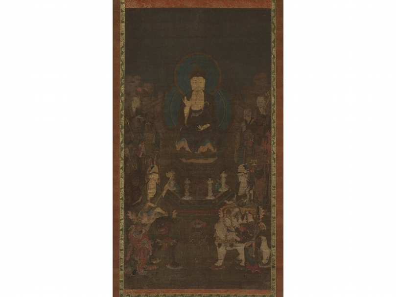 隨著佛教傳入,佛教中的白象及獅子也在日本出現。圖為14世紀《釋迦文殊普賢十大弟子像》。(©The Metropolitan Museum of Art)