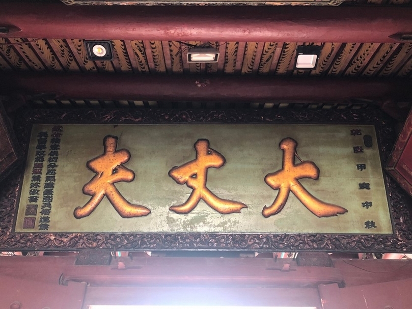 祀典武廟最為人津津樂道的「大丈夫」匾額,原是林爽文事件之後,台澎兵備道楊廷理在清乾隆五十九年(1794)所立。關公被漢人社會稱謂「武聖」,「大丈夫」與關公的勇武忠義呼應。此外,「大丈夫」(だいじょうぶ)在日本語的脈絡裡,相當於「沒問題」,更增添漢字文化的趣味。廟內另一咸豐年間,珍貴的「萬世人極」匾,經詢問廟方後,目前收藏起來保養。筆者在2017年拍攝時,仍懸在正殿的橫梁上。