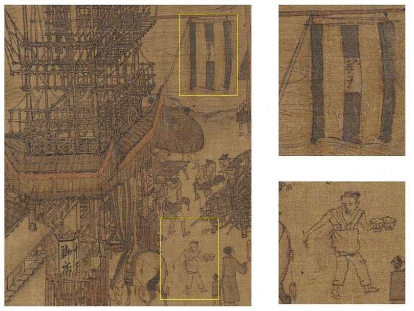 北宋張擇端《清明上河圖》畫中描繪的酒旗,北京故宮博物院藏。(©wikipedia)