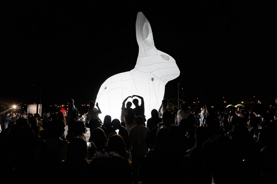 午夜時分,仍有逾十萬名觀眾在街頭,擺在他們眼前的,多數直覺是「走了很多的路,換來存在感很低的作品」。(攝影/吳牧青)