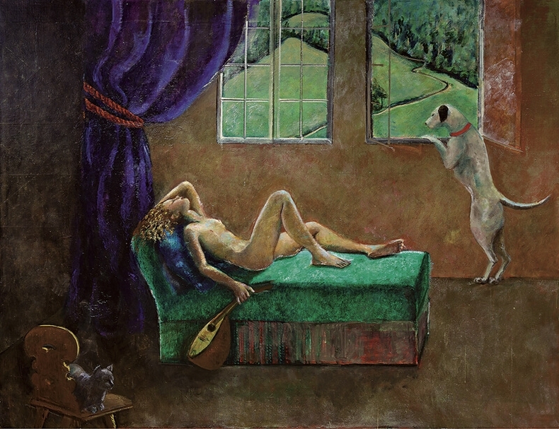 巴爾杜斯《少女和曼陀林》.油彩畫布.190×250 cm.2000-2001。