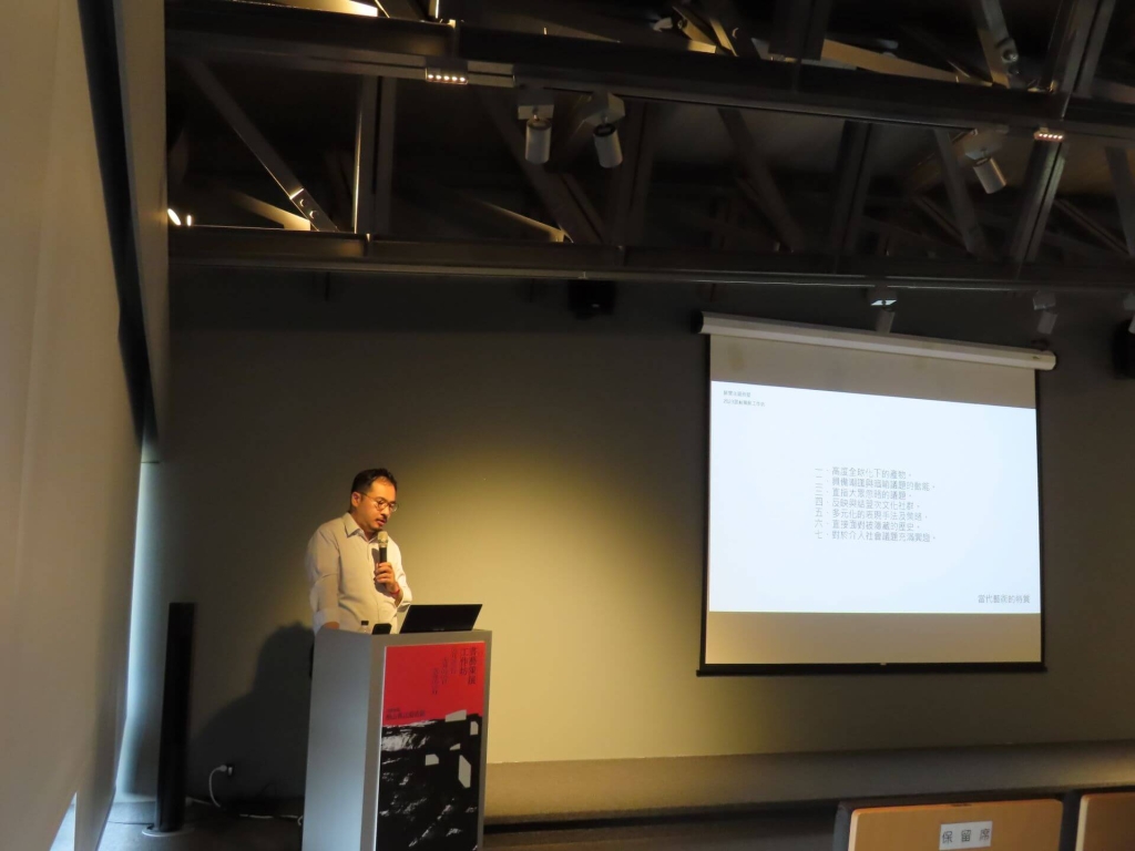 活動第二日則由國立成功大學創產所副教授陳明惠開場,講授「策展」觀念的形成、策展人需具備能力以及自身策展的經驗分享。陳明惠引導學員思考進行策展工作時,需審慎考量與藝術家的溝通、卸佈展注意事項、民眾參與計畫、媒體行銷宣傳等各種面向。隨後,獨立策展人高森信男便聚焦於展覽主題的形塑。他透過對當代文化藝術史的深厚了解,以及與策展團隊腦力激盪,探討當代策展具有實驗性、反傳統、思辨性的特質。他強調展覽主題是「學術研究」、「藝術表現」與「觀眾期望」三者間的拉扯與妥協,並啟發學員延續此策展思路,各自形塑自己的策展提案主題。