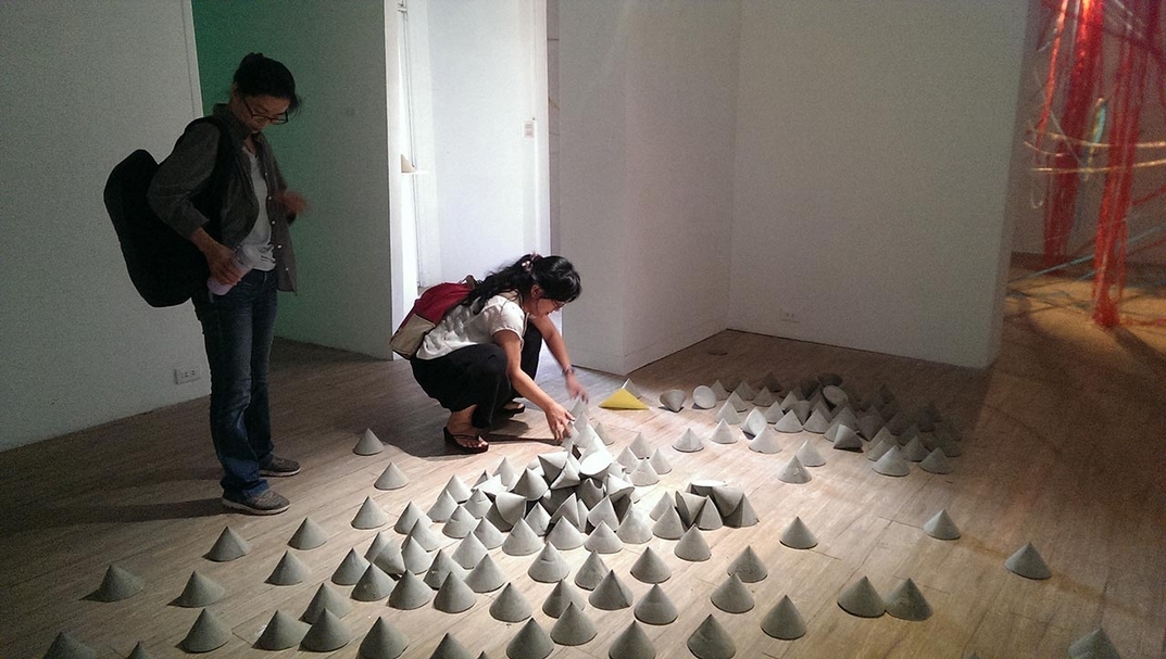 東海大學美術系「藝術策劃與管理組」的學生,於43號創藝實習中心進行的獨立策展計畫一景。(東海大學美術系提供)