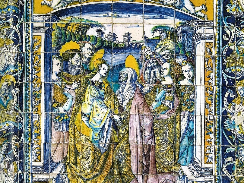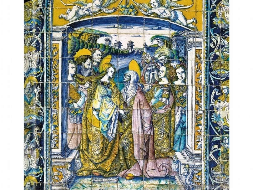 1504年作《聖母訪問施洗者約翰之母》,位於賽維亞皇家城堡的伊莎貝拉女王陶瓷祭壇。(王明彥提供)