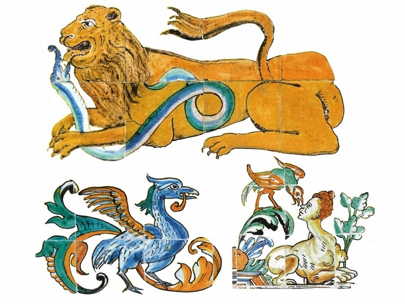 另外,西班牙王室因經濟繁榮累積大量財富,故於賽維亞皇家城堡進行耗資巨大的整建工程,工程中建築裝飾均帶有強烈的義大利文藝復興風格。而在陶瓷裝飾部分,則大量採用著色瓷磚,如位於國王廣場,由皮薩羅於1504年製作的伊莎貝拉女王陶瓷祭壇,以及1577-1583年間由菲利浦二世(Felipe II de España,1556-1598在位)下令翻修的哥特宮(Palacio gótico)拱頂大廳,該廳曾為菲力浦二世的父親—查理五世大帝(Carlos I,1516-1556在位)的婚宴場所,其多色陶瓷鑲板屬文藝復興風格,圖案包括神話人物、天使與水果等,色調以黃、藍、綠、橙為主,堪稱西班牙該類現存陶瓷鑲板的典範。