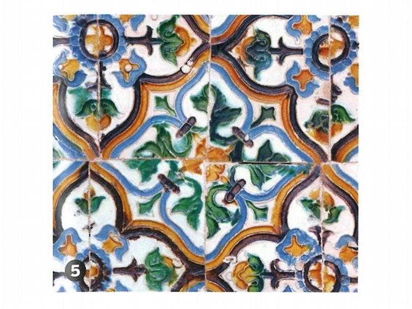 磁磚成為當時代建築的流行裝飾。在賽維亞皇家城堡花園中,卡洛斯五世涼亭(Palacio de Carlos V,1546年竣工)除以其建築格局與簷廊聞名之外,建築內外牆面瓷磚更繪有伊莎貝拉時期的動植物圖案,該類圖案受當時掛毯、地毯與鑲板式天花板設計的啟發,常見刻於典型哥德式晚期或帶曲線的八角形、正方形中的花朵。此外,完工於1519年的安達魯西亞總督官邸(Casa de Pilatos,Sevilla),為當地總督模仿羅馬執政官官邸所建,建築形制融合哥德、穆德哈爾與文藝復興等風格,瓷磚裝飾保存質量俱佳。其牆壁均以產自1536至1539年賽維亞作坊的瓷磚貼面,設計圖案多達150餘種,主題皆為16世紀上半的流行圖案,包括花卉、幾何圖形與紋章。其中屬穆德哈爾風格者,繼承穆斯林藝術的幾何網格造型,屬伊莎貝拉風格者,則為精細花卉藤蔓,文藝復興風格的瓷磚數量最多,不僅圖案間更為獨立,尺寸亦較大,具有正方形、圓形、菱形與花葉、球體的豐富組合元素,帶有義大利影響的痕跡。