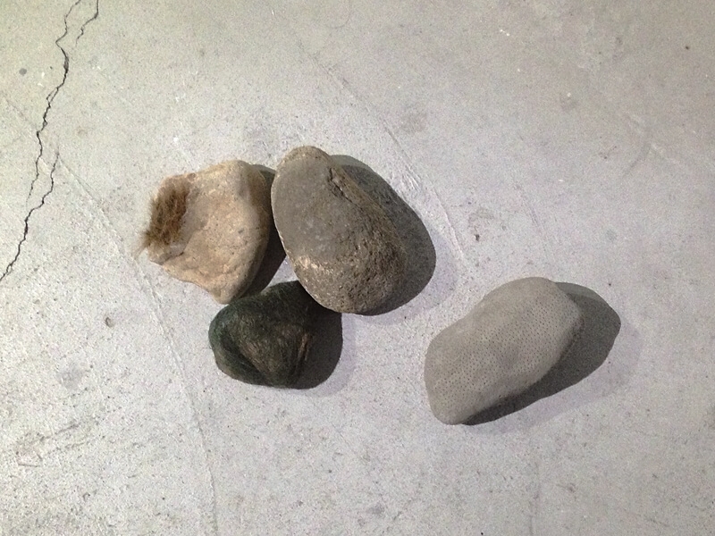 喜愛挑戰新媒材的于吉,過去曾使用過蠟、石膏與水泥等,特別是她透過蠟凝固的線條表現出時間的流動感,令人驚豔。這次,于吉以「硫磺」為素材,再次挑戰材料的可能性,現場擬真的硫磺巨石,以及長滿青苔的綠毛怪,皆為觀者帶來視覺的驚歎號。于吉為何對媒材的探索如此深感興趣?「我是學雕塑出身,必須自己動手解決問題,會不斷嘗試接觸各種材料。」于吉對基礎生活中會使用到的材料如木頭、水泥、石膏、蠟等特別感興趣。