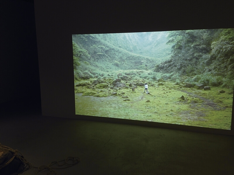 陰雨綿綿的天候,看似嬌弱身軀的于吉,在顛簸難行的泥濘路上,推著重達二十幾公斤的人工硫磺石往七星池的方向前行,影片中記錄下藝術家與自然對話與搏鬥的軌跡,這是中國藝術家于吉首度以錄像形式呈現的作品,引領著觀者走進彷彿如夢似真的場域,揭開一場人與自然的對話。