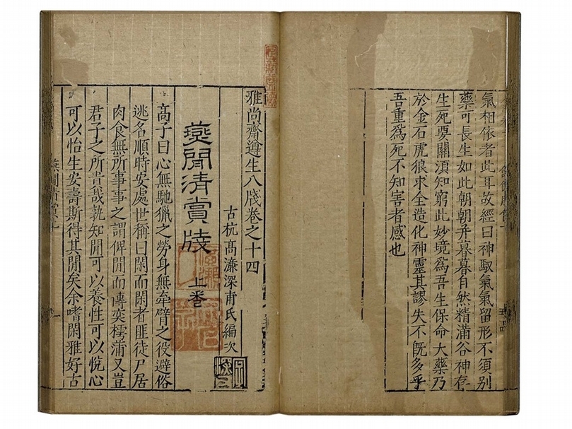 明代高濂《雅尚齋遵生八牋》,明刊本,國立故宮博物院藏。(國立故宮博物院提供)