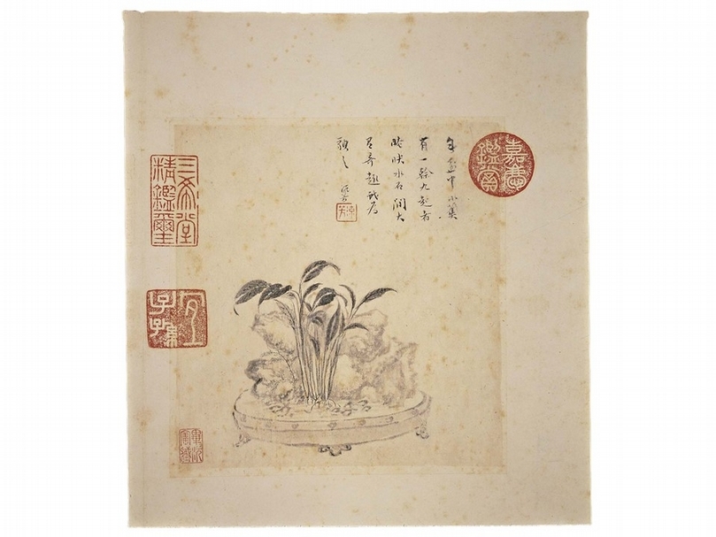 自宋代開始,逐漸發展成熟的盆景或盆玩藝術,也是晚明文人文房清翫中不可或缺的角色,並成為文人畫家筆下描繪的對象。李流芳《山水寫生冊.盆蕉》即繪一盛於古盆,傍立奇石,作為几案清玩的盆蕉,如同一座迷你山水的盆景。屠隆《考槃餘事》:「盆景,以几案可置者為佳,其次則列之庭榭中物也。最古雅者,如天目之松,高可盈尺,其本如臂,針毛短簇,結為馬遠之『欹斜詰曲』、郭熙之『露頂攫拏』、劉松年之『偃亞層疊』、盛子昭之『拖拽軒翥』等狀,栽以佳器,槎枒可觀……至若蒲草一具,夜則可收燈煙,朝取垂露潤眼,誠仙靈瑞品,齋中所不可廢者。須用奇古崑石,白定方窯,水底下置五色小石子數十,紅白交錯,青碧相間,石汲清泉養之,日則見天,夜則見露,不特充玩,亦可辟邪。他如春之蘭花,夏之夜合、黃香萱,秋之黃蜜、矮菊,冬之短葉水仙、美人蕉,佑以靈芝,盛諸古盆,傍立小巧奇石一塊,架以朱几,清標雅質,疎朗不繁,玉立婷婷,儼若隱人君子,清素逼人。相對天池茗,吟本色詩,大快人間障眼。」從古雅、奇古崑石、古盆等描述詞語中,不難想見晚明文人對於盆玩的賞翫,主要是建立在對於古拙、古雅之美的追求上。尤其值得注意的是,對於古松盆景的形狀姿態,則以宋元繪畫大師郭熙、馬遠、劉松年與盛懋畫中的松樹為範式,逆反了藝術模仿自然,反倒變成要求自然去模仿藝術,殊堪玩味。