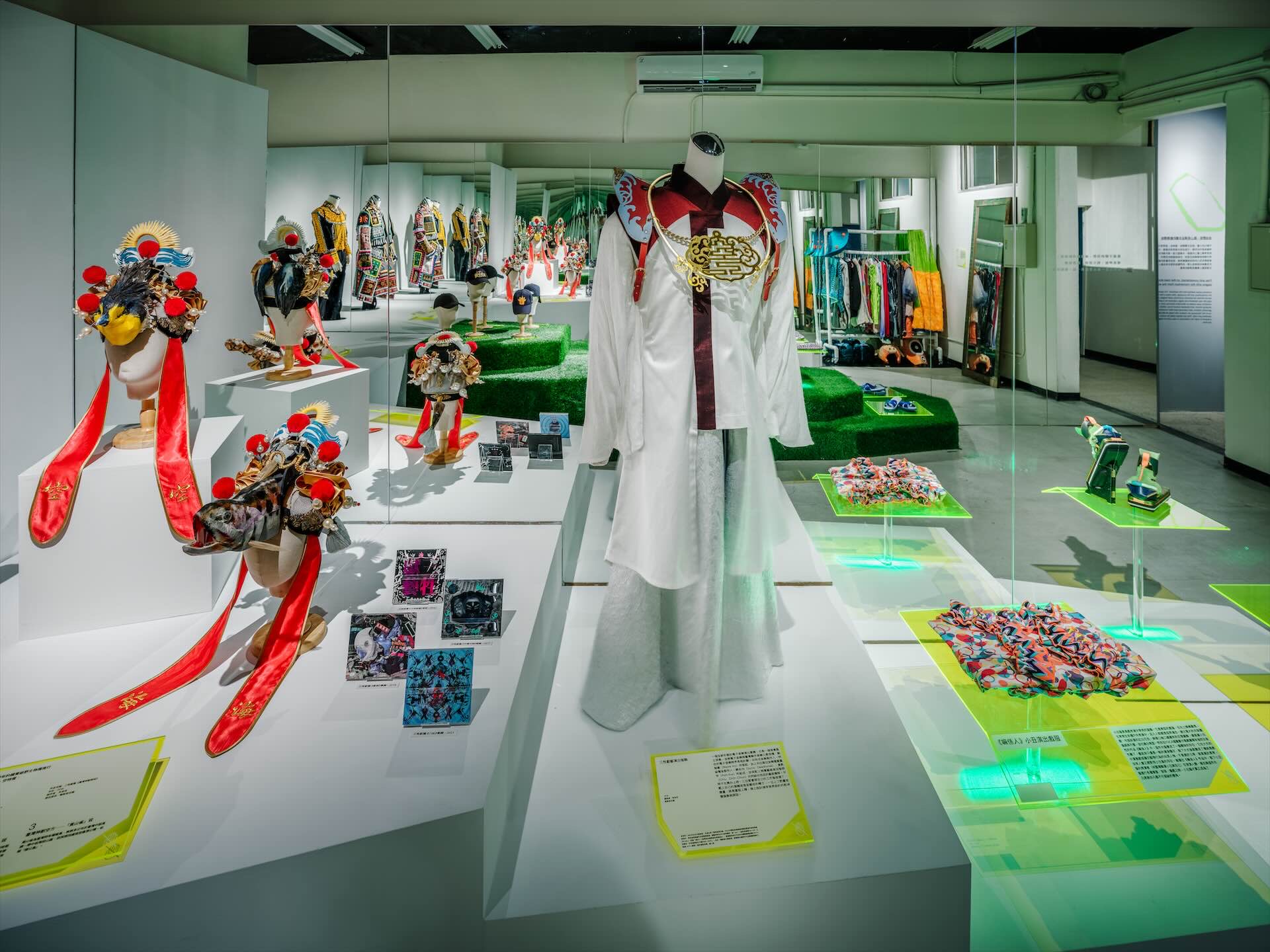 文博會主題館「野性博物館」的第四展間「混搭衣帽間」邀請到了FOCA馬戲團的戲服、三牲獻藝的日常衣帽與布拉瑞揚的傳統族服,並搭配設計師昇旺制造的李育昇的三牲獻藝衣裝頭冠、JUST IN XX 周裕穎的拼接繡片服裝,左右兩側互相輝映與對話。(2023臺灣文博會提供)