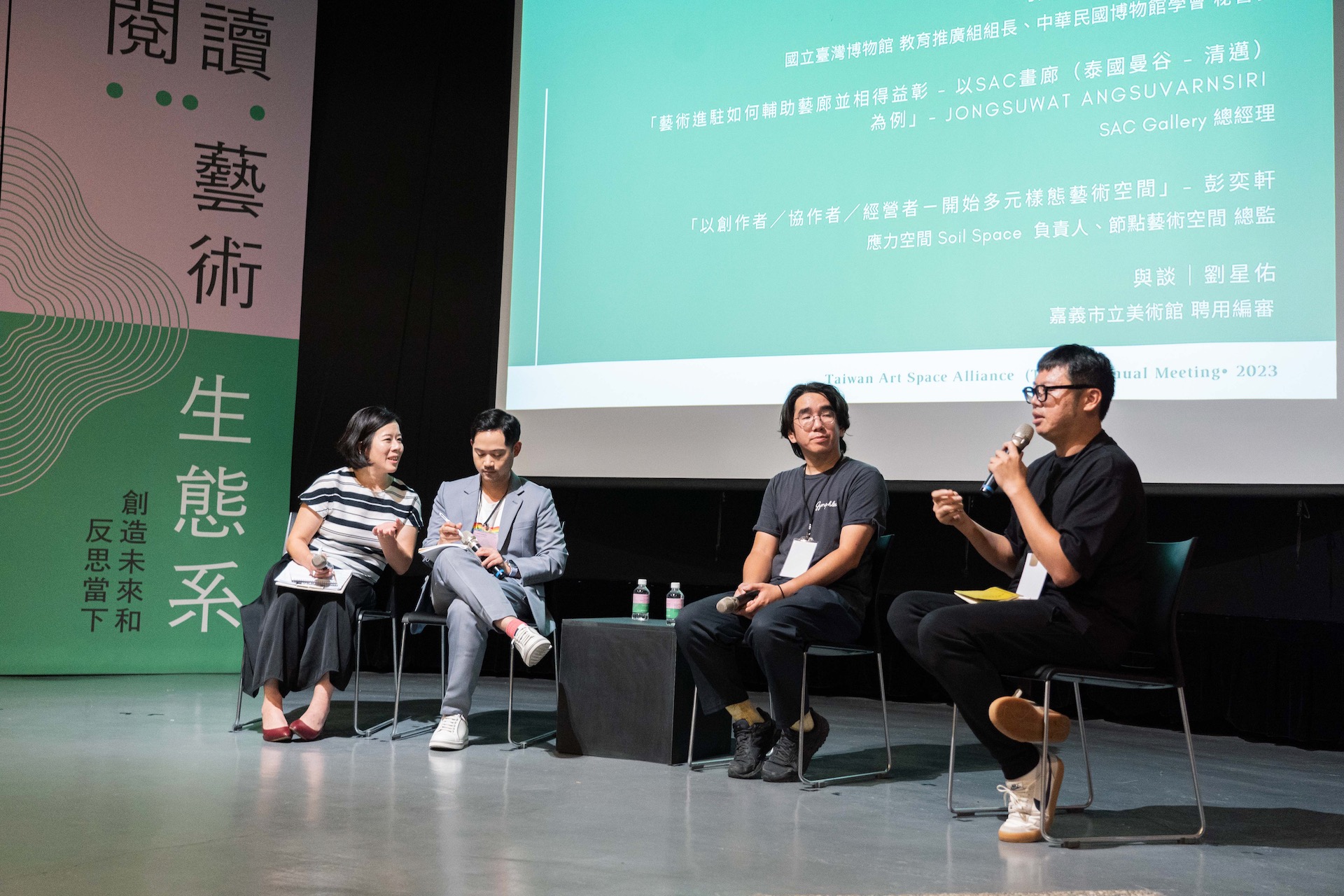 面對兩個空間的差異性,與談人劉星佑指出,即便是由藝術家組成的團體,終須面臨怎麼跟機構對話的挑戰;而面向市場的商業畫廊,也還是需要藉由駐村等方式,與藝術家建立密切的交流。正如本次年會主題,因為這些角色都是藝術生態系的一環,不論生態系怎麼發展,藝術家與機構之間的對話仍然是重要且必需的。