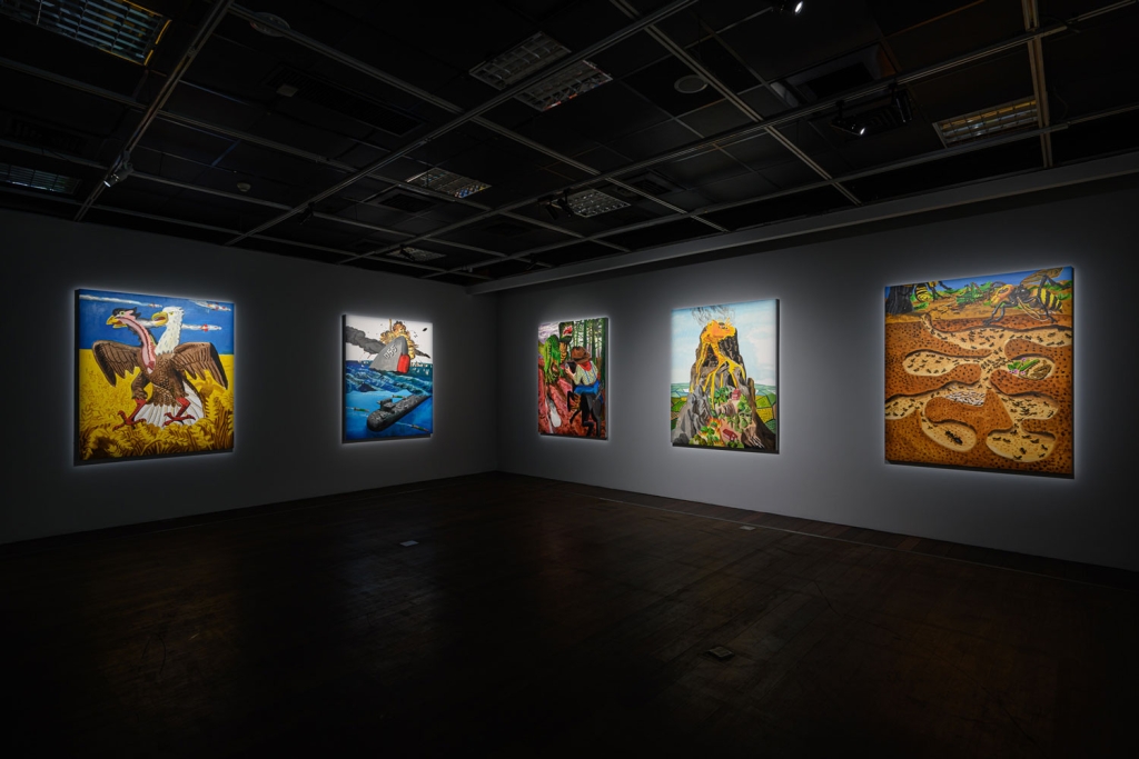 繪畫、影像與當代生活經驗的問題,是策展人關注的一大重要景觀。傅寧與楊立兩者的繪畫均提及當代影像經驗,但說這是以繪畫抵抗影像文化也並不確實,我想那更像是對訊息與畫面的消化或取用,但也不能簡單地說成是視覺性轉譯。在他們那裡,影像與顏料都成為原物料,在筆刷意識控制與無意識的自動性下盡顯精深複雜,不然,就朝向一種純真的不透明,有著驕縱尾勁的直球對決,對繪畫之愛的灼熱知見。無論是對影像形式置入問題感的參照性擬仿,如在傅寧的「扎在眼裡的毛刺與分岔」系列繪畫以流動性、拼貼碎空間的手法展開對「限時動態」影像風格的回應;或是楊立的「小亂局」、「大確幸」系列以自己強烈的「畫家」意識,透過高度張力的畫面品質折射出來的日常影像經驗。