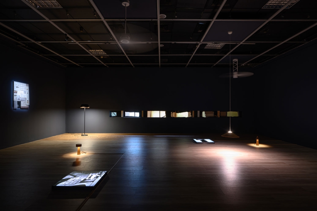《顯視錯誤:404》的游擊形式帶著思索的積極性,屢屢出現在展場各角落,提醒著我們可能都知道但經常忽略的景觀與媒介的虛假性。接著,如同策展人所提示的,當代的影像狀態、身體處境,以及地景與記憶問題,是閱讀此次展覽的三大線索。洪聖雄的《合作者的居所》似正位於涵括著前述線索的輻輳處。首先,作品的發展計畫關乎當代藝術的生產狀況與自我定義;其次,展場地面展示的攝影影像回望著自身成形的過程―木地板施作者的身影。這是洪聖雄的編導手法,透過空間氛圍的設計,身體與物在劇場式的空間中彼此強調。第三,則是將展廳隔牆打破,允許光線滲入,讓長期收納藝術的乾燥白盒子感到溫潤。這使得美術館空間的內外地景及其所遍歷的一切,也就是一開始就由牆面隔開的內部無數檔展覽歷史與外部的市容景觀變遷,如今坦誠相見。總而言之,洪聖雄並不讓自己位於作品創造者的絕對位置,而是作為策動前述三點的中介角色。就此而言,關於影像的生命迴圈(照片是作品,也是成為作品的過程)、身體與情境的相互塑造,以及地景與空間狀態的變遷歷程,在我看來,正是微妙地回應著展覽線索的展中展。