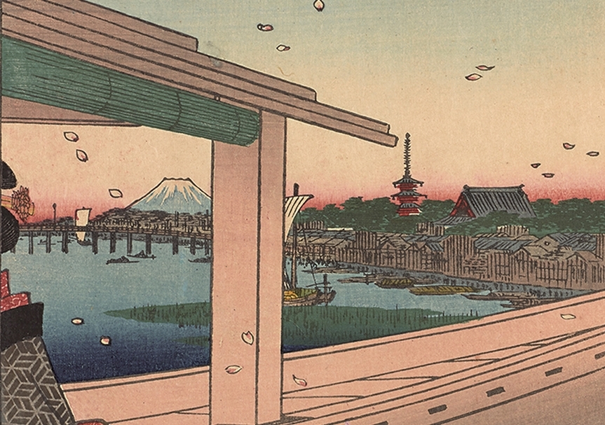 歌川廣重〈名所江百景 遠望吾妻橋金龍山〉。(©Nakau Collection)