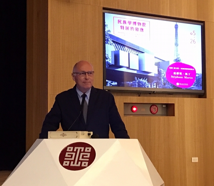 2017年5月26日,故宮林正儀前院長邀請了馬丁館長,在故宮南院以「民族學博物館特展的效應」為主題發表講座。(陸仲雁提供)