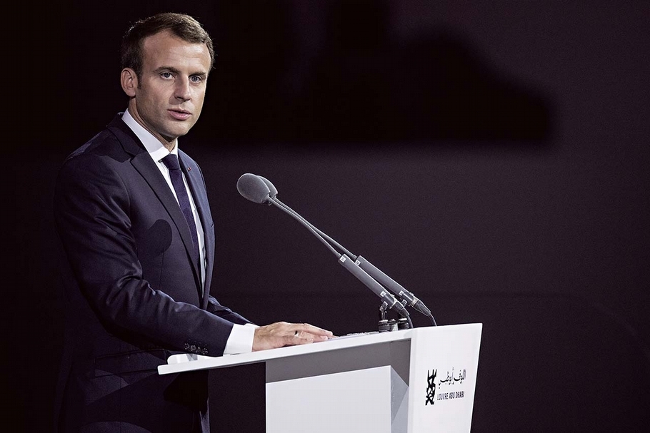 法國總統馬克宏在阿布達比羅浮宮開幕會上致詞。© Louvre Abu Dhabi