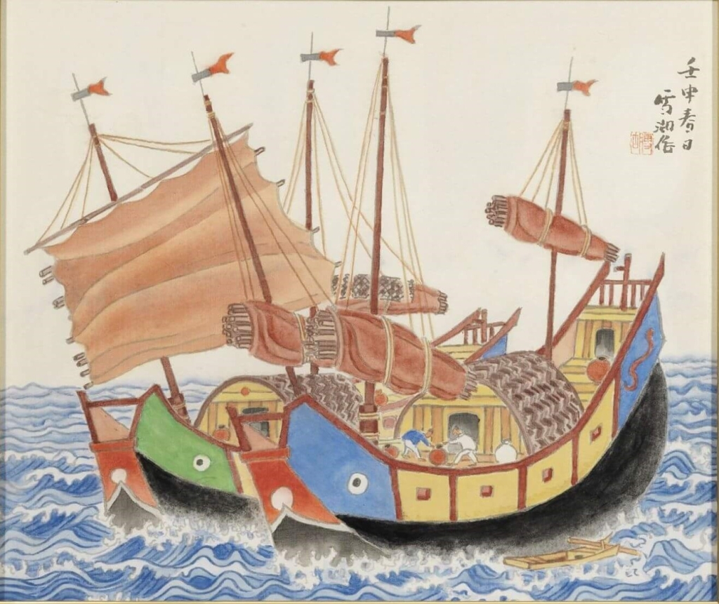 1927年臺灣舉行第一次官辦展覽,郭雪湖的《松壑飛泉》入選第一屆臺展東洋畫部。為了證明自己的能力,第二年他以大自然為師,歷經半年勤奮實地踏查寫生,畫過許多草圖,1928年嘔心瀝血之作《圓山附近》,獲得了第二屆的臺展東洋畫特選。而1935年第9屆臺展的《戎克船》,不但獲得大阪朝日新聞社贊助的「朝日賞」,領到至少1百圓的獎金(對比當時生活費1個月約30圓,是一筆豐厚的收入),而「戎克船」這個繪畫題材也在郭雪湖的繪畫生涯中續航了70餘年。