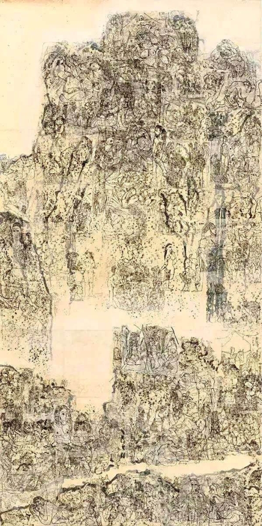 1985 年後,他的風格轉向水墨,以墨點風格創造「黃山系列」及《仿范寬谿山行旅圖》、《仿李唐萬壑松風圖》等作品。他所追求的並非復古「中國風」,延伸而來的1990 年代「行旅圖系列」,橫越時間與空間,以紐約為起點,韓湘寧帶著滾筒與紙墨,將每日行走的路面痕跡拓印,這些拓印下來的紋理,被置入在北宋范寬名畫《谿山行旅圖》畫面中。為何是《谿山行旅圖》?這並非憑空飛來的靈光,伏筆早埋藏於在藝術家青春時期,1966年《膜拜》的構圖布局正是挪用了《谿山行旅圖》,韓寧說,《膜拜》正是他最初的「膜拜」。