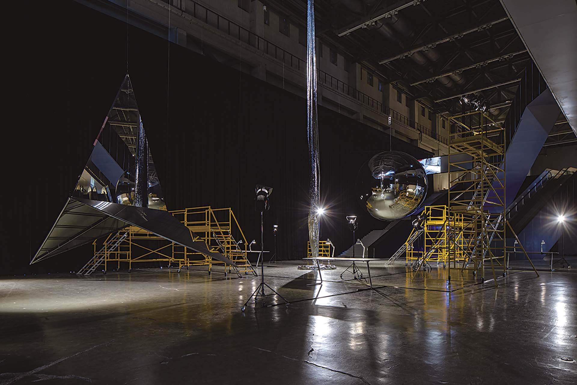 電影是全球化流通的介質,特別是在網路出現之前。與周大為的藝術院線的消費化路線相反,安東.維多克在上海雙年展中提出的「宇宙電影」,是將電影從自身概念抽離,變得虛無和形而上。PSA場館開放的大廳被巨大的黑色幕簾遮擋,空間與外界隔絕,展廳既模擬為劇場,也是模擬宇宙空間—總之要與現實阻隔。策展人將電影的敘述性分解為光束形成的「幀」,一如日月星辰可以被理解為顯現在天幕上影像,是寰宇呈現給大地的「電影」。「在宇宙中所有過去的事件都以『光的軌跡』形式儲存」(註3)。世俗紀事在展覽中無足輕重,展覽的精神被指向了某種現代性的框架。