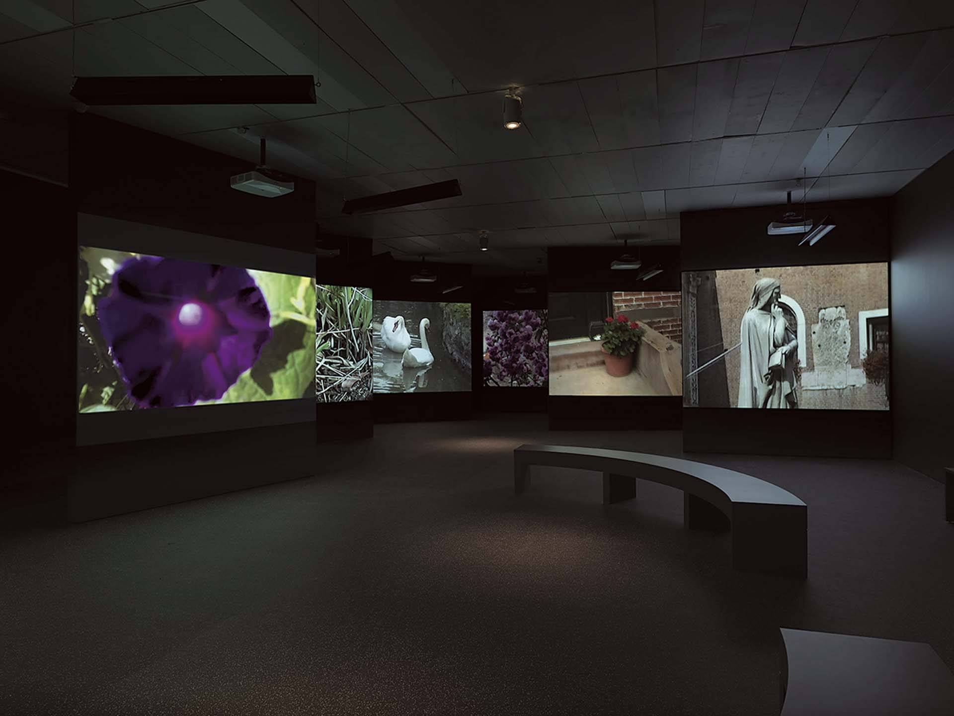 從他於二戰末以立陶宛難民的身分抵達紐約開始,觀者看到相機不間斷地記錄著導演的「尋常生活」。像是,反覆出現的洗禮、婚禮、喪禮、小孩、貓咪,公園裡的綻放的春花,或是紐約冬陽照耀下大衣皮毛上的光暈,這些平凡的主題與場景,都是近70年來梅卡斯的個人生活、他的友人、紐約不同街區,甚至是當時前衛電影發展的紀錄。這些沒有敘事、沒有大歷史的微觀檔案,主觀地屬於梅卡斯眼下的紐約(有的時候他僅將攝影機卡在戶外,某處任其自行拍攝數小時,或是一天),但同時也客觀地屬於觀者們,當他們坐在半月形長椅上,總覽著12個螢幕此起彼落地上映著梅卡斯的電影日記(註4),導演的記憶,透過多螢幕並置成為我們擴延的意識:既可以是平行綜覽下,梅卡斯的詩意紀錄,也可以是個別、交互觀看之下,持續抗拒單一意義與特定敘事的檔案。