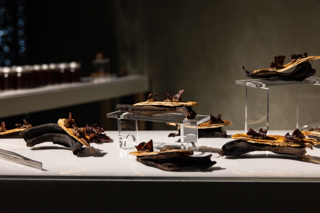 有趣的是,若對照張碩尹前後所發表的作品,恰好可以清晰看到他創作循序漸進的思考脈絡。首先他於前一年的《斜紋夜蛾》(2015)即透露他對於生物彼此延續生命的思考,他在一共生實驗的溫室系統內,食用高蛋白幼蟲的同時又搜集尿液灌溉葉菜,建構出小型的生態圈。後又於2019年北美館的個展「Kosmos」中,展出新作眾多機器結合標本的新作,引用科學、現代、理性等角度介入生態系統,模糊我們對於生命與非生命、動物與人類的界線認知。