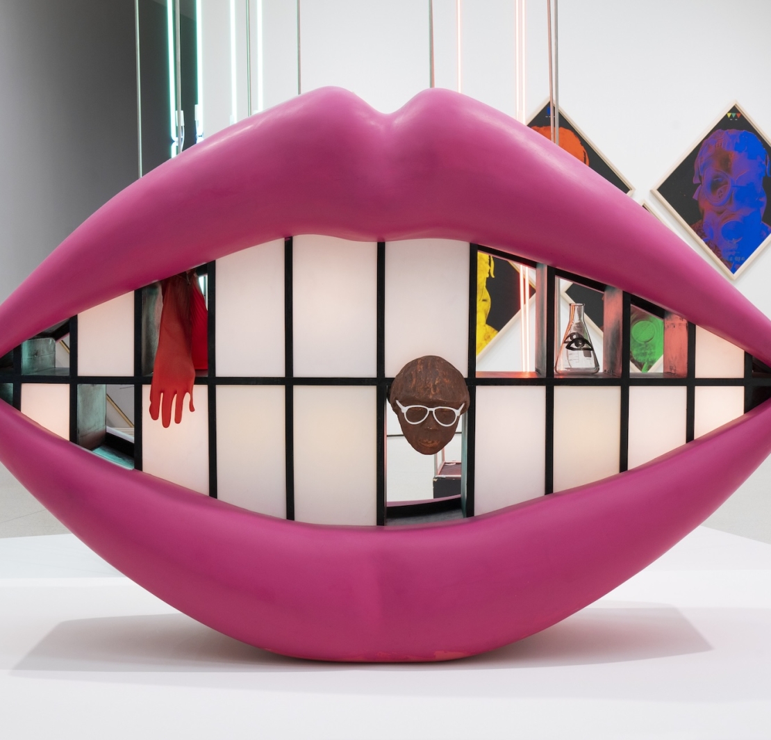 如果是一點準備都沒有就進入古根漢美術館展場(Solomon R. Guggenheim)的觀眾,可能並不會發現自己正在觀賞一場建構「區域藝術史」的展覽。畢竟,縱貫三層塔樓的「唯有青春:韓國實驗藝術1960到1970」裡,所有大型展品都毫不掩飾地彰顯自身的普世與當代性。無論是鄭康子(Jung Kang-ja,1942-2017)標誌著國際普普主義(Pop Art)的豐腴紅唇塑膠雕塑《吻我》(Kiss Me,1967/2001),仿若針砭當前環境議題。李健鏞(Lee Kun-yong,1942-)曾在聖保羅的斷樹裝置《實體術語》(Corporeal Term,1971/2023),以及朴賢基(Park Hyun-ki,1942-2000)的《無題(電視石頭塔)》(Untitled [TV Stone Tower],1982)如作品字面意義的螢幕與石頭的集合,皆以青春永駐的媒材貼合著新世紀的脈動,以全球化的造型平面化藝術史的書寫脈絡。