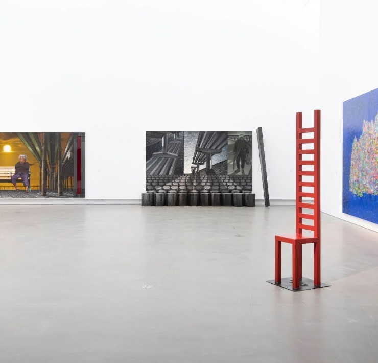 一樣是港口,不同的是藝術家的作風。謝德慶從一個船員,在紐約跳船後成為一個非法移民開啟了「身體」、「行為」與「政治」的創作叛逃。這個不同一般的創作者,成為了台灣當代藝術第一個捲起狂風、巨浪的創作者,冷戰及戒嚴後期的藝術及藝術家,或許恰如謝德慶掀起的狂風、巨浪般,對於現代印象派風格繪畫與雕塑的叛逃與跳船,成為了後現代和當代台灣藝術的起點。而這一次,港口及海員成為了挪用和權充的符號,吳天章的《戀戀風塵》投影著侯孝賢的電影敘事卻又間雜著自身的青春記憶。《春宵夢》裡的墨鏡女子顯像著港都的異色情調,而那些水兵乃至於類BDSM的皮相面具裡的鬼魅氣質,又彷彿是基隆的盂蘭盆會的新顯影。同樣的青春,同樣的雨霧裡,連建興看見了基隆的船廠及礦場的頹廢、敗壞,那繁華隨著雲煙散去的寂寥,那荒原化的城市,成為了藝術家畫中的重要背景。他將空間結構予以重新建構成新的故事,奇想與真實間,構築一個個人筆下獨有的異境。
