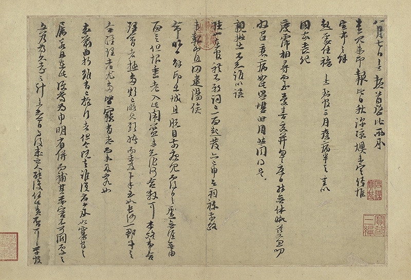 一言以敝之,我認為這次展覽基本上還是可以滿足「書畫名品」這樣的標準。從書法來看,本次入選的精品,首推書聖王羲之的〈快雪時晴帖〉和〈遠宦帖〉,它們所呈現的是晉唐法書傳承的概念;北宋部分,則是選擇了宋徽宗〈詩帖〉及〈宋四家法書〉來代表宮廷與文人書法;南宋部分,入圍的朱熹〈致會之知郡尺牘〉(圖2)和陸游〈致原伯知府尺牘〉,則是作為詩人與理學家、理性與感性不同氣質的對比;元代部分,便是以崇尚復古的趙孟頫為主角,至於張雨的書法則是遊走於古典與個性派書風之間;待跨至明代,則是選出了被永樂皇帝譽為「我朝王羲之」的沈度,作為宮廷書風之代表。