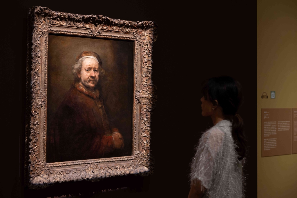 林布蘭(Rembrandt,1606-1669)的《六十三歲自畫像》(Self Portrait at the Age of 63,1669)則是其離世前所繪製的三幅自畫像之一,彌足珍貴的自我凝視,光與色彩之間描繪的微細變化,蘊含晚年藝術家一生打磨之繪畫技藝的巔峰,也令觀者動容。