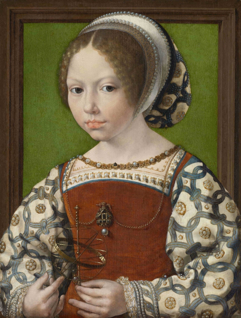 北方文藝復興代表人物之一楊.荷賽特(Jan Gossaert,約1478-1532)的《年輕公主(丹麥的多蘿西亞?)》(A Young Princess [Dorothea of Denmark?])描繪人物推測為丹麥流亡國王克里斯蒂安二世的女兒,凸顯人物的框中框、栩栩如生的細節、神秘複雜的人物神情與姿態,指向失落王國的惆悵與尊嚴。