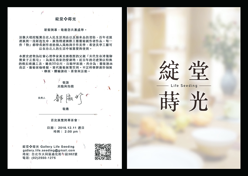 有別於綻堂文創,以文創商品及平面畫作展覽為主,郭董事長建立「綻堂‧蒔光」的目的在於推廣生活美學,推廣生活中可以使用的藝術工藝品,讓獨一無二的用具及器皿協助點綴美好的每一天。而在致力於支持個人藝術家創作的同時,更希望給台灣、國際的創作者更多交流、展示的空間,推動美學普及。