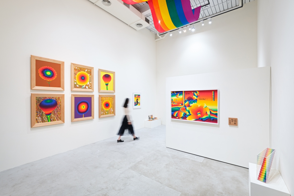 Hiro Hiro Art Space近期為靉嘔舉辦的個展「靉嘔:虹的激浪狂熱分子」,展出多元類型、時間跨度幾十年的作品,更邀請了曾於2012年舉辦過靉嘔回顧展的東京都現代美術館的策展人西川美穂子、以及長期觀察並收藏靉嘔作品的藝評家本阿彌清,做脈絡性的介紹與解析講座。而此之前不久,香港M+也推出名為「靉嘔:虹 虹 虹」的小型回顧展,作為「重點介紹亞洲藝術和視覺文化歷史上的重要藝術家和時刻」的一系列展覽之首展。兩次展覽包含彼此呼應的展出內容,皆可謂華語世界觀眾進一步理解這位風格鮮明的藝術家創作精神與脈絡的絕佳契機。