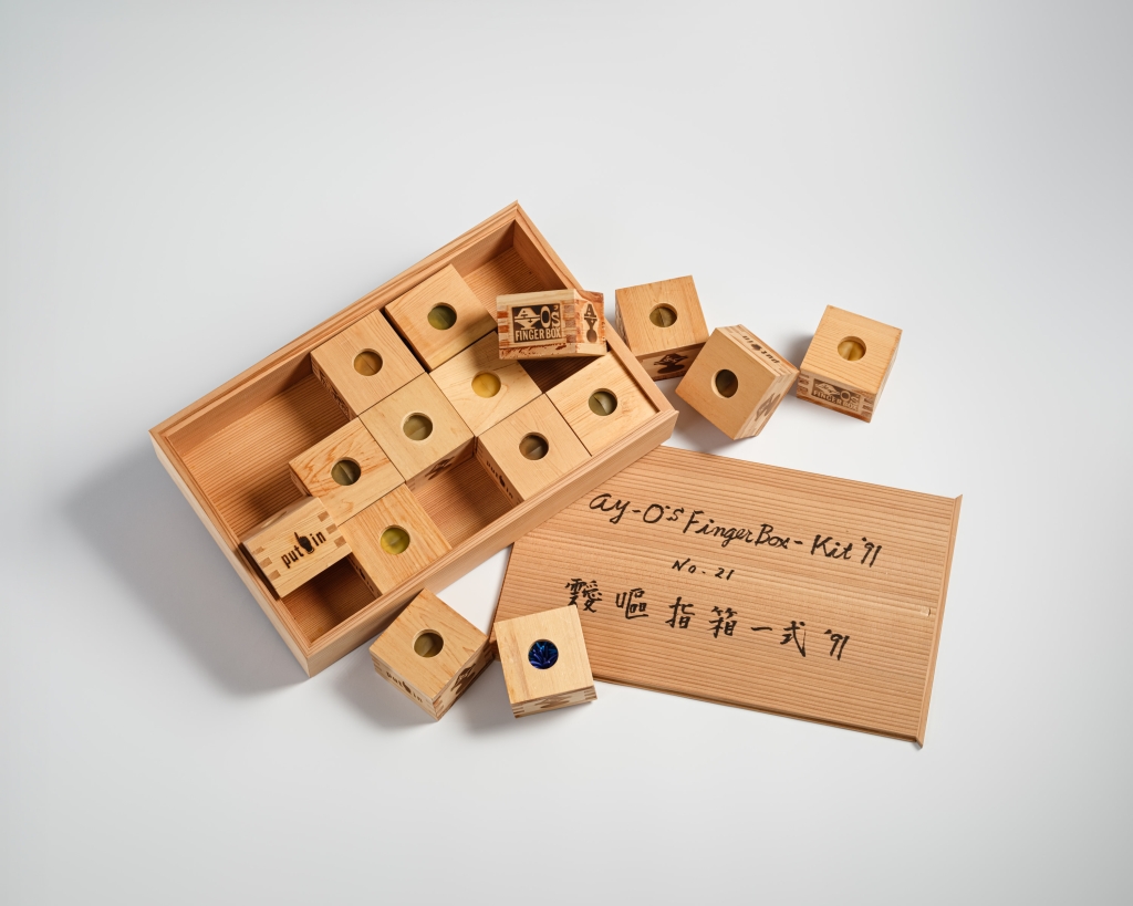 2014年的一次採訪中,靉嘔表示自己思考的重點在於「如何在不抄襲他人的情況下創作出真實的作品,並充分運用自己的敏感度」。他對獨特性的渴求表現在他為自己取的奇特藝名上,而對真實性的堅持在早期便根植於他的創作生命中,直至1960年代早期,他確立了以包括味覺、聽覺、視覺、嗅覺和觸覺在內的五感以及第六感為基礎的感官體驗為探索領域的創作方向,催生了箱子、盒子形態的互動作品,主要融合了觸覺、視覺以及空間環境元素,最著名的當屬參與1966年威尼斯雙年展的大型空間裝置《彩虹觸覺室》(Rainbow Tactile Room),以及著名的「手指盒」(Finger Box)——觀眾此次可在Hiro Hiro Art Space的個展中與作品互動,也是一大驚喜。