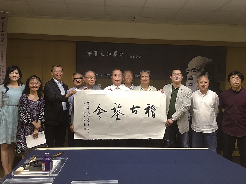 鍾明善書「稽古鑒今」贈中華文物學會。圖︱中華文物學會