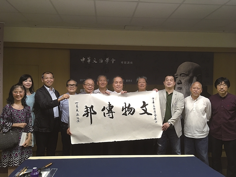 張炳煌書「文物傳邦」贈中華文物學會。圖︱中華文物學會