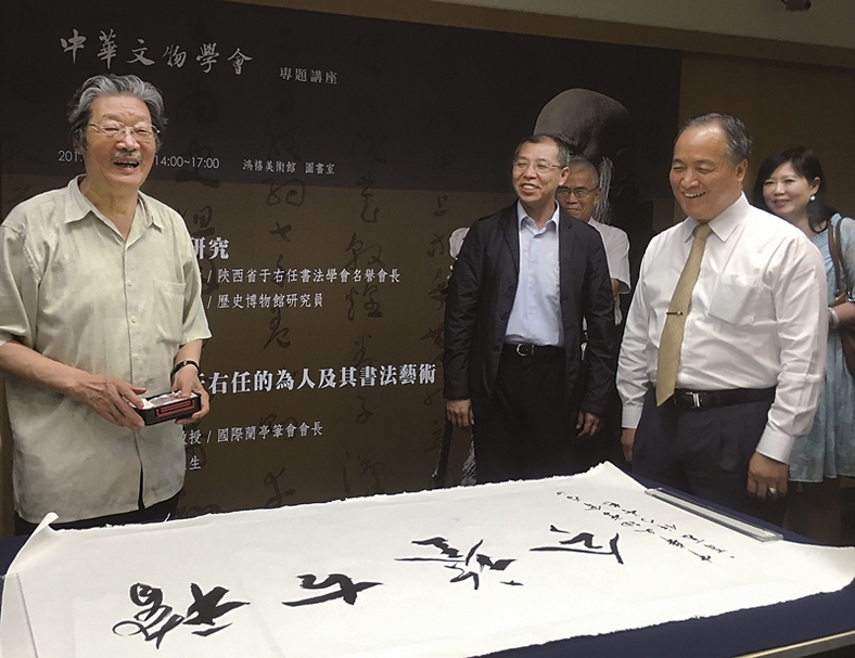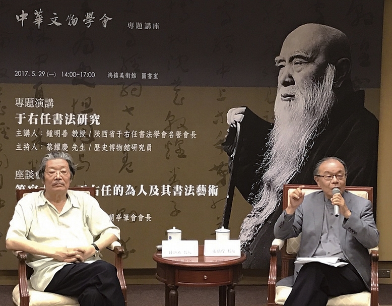 國立故宮博物院6月1日至8月27日首次舉辦「自然生姿態─于右任書法特展」,能在典藏古代書法舉世聞名的故宮舉辦個展的近代書家,唯有于右任。於開展前夕,中華文物學會特別邀請中國書協顧問、陝西省于右任書法學會名譽會長、西安交通大學博物館名譽館長鍾明善教授來台專題演講「于右任書法研究」,由國立歷史博物館研究員蔡耀慶擔任主持人,鍾明善並與中華民國書學會會長張炳煌一同對談,進行「筆寫古今─于右任的為人及其書法藝術」座談會。